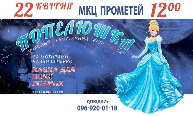 Казка для дітей і дорослих. Глядачі зануряться у світ Казкового Королівства і справжніх див, спостерігаючи за чарівним перевтіленням Попелюшки на прекрасну Принцесу. Зустрінуться з подружжям Короля та Королеви, Лісничого та Мачухи. І, звісно, впізнають сварливих сестер Попелюшки.